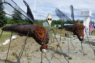 At Watson Lake we went to the Northern Lights Centre for an 'Electric Sky' theatre experience - seats were laid back and documentary on the Northern Lights was projected onto the dome ceiling making it appear a 3D visual. After the theatre we walked through the Sign Post Forest which has over 72,000 signs. It was started in 1942 by Carl Lindley a homesick GI while working on the Alaska Highway. When repairing a directional post, he decided to add a sign for his hometown of Danville, IL, and inadvertently started a huge collection of signs.
